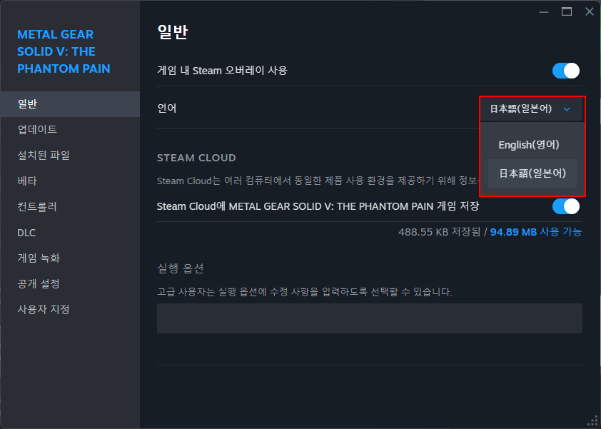 일반 > 언어 부분을 English(영어) > 日本語(일본어)로 변경하여 줍니다.