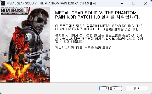 - 생성된 MGS_TPP_KOR.exe를 실행합니다.