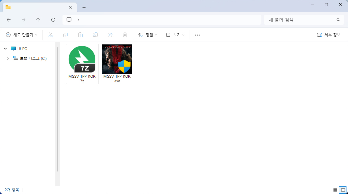 01. 다운 받은 MGSV_TPP_KOR.7z의 압축을 해제합니다.